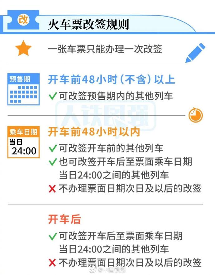 中國鐵路官宣:火車票改簽更方便了,開車當日24時前尚有余票情況下仍可辦理改簽