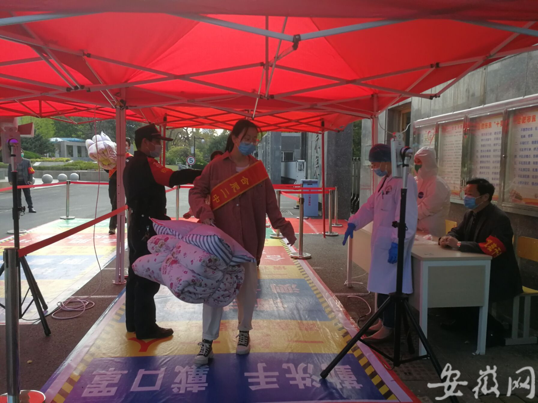 今天早上7點(diǎn)多,合肥市第二中學(xué)門(mén)口,高三學(xué)生開(kāi)始陸續(xù)進(jìn)校。新安晚報(bào)記者在現(xiàn)場(chǎng)看到,交警在校門(mén)口維持秩序,送孩子上學(xué)的車輛即停即走。由于不允許家長(zhǎng)送孩子進(jìn)入校園,合肥二中設(shè)置了專門(mén)進(jìn)入校園通道,組織了一些學(xué)生志愿者,用小推車幫學(xué)生運(yùn)送被子等行李。