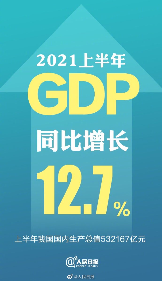 國家統(tǒng)計局:中國上半年GDP為53.2萬億 同比增長12.7%