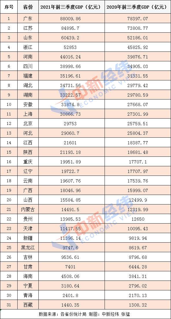 31省份經(jīng)濟三季報出爐,上海、北京跌出前十