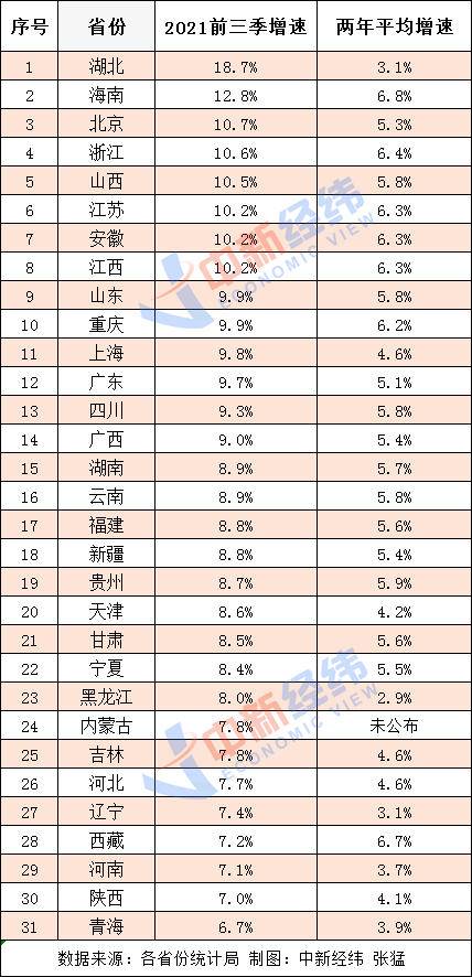 其中,湖北以18.7%的增速遙遙領先,海南增速12.8%緊隨其后,北京增速10.7%居第三。