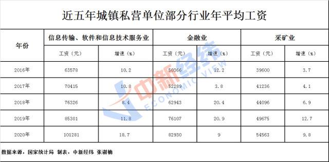 從城鎮(zhèn)非私營單位看,2016年,信息傳輸、軟件和信息技術(shù)服務(wù)業(yè)反超金融業(yè)成最賺錢行業(yè),平均工資達(dá)12.25萬元,并連續(xù)多年霸占“榜首”位置。2020年,該行業(yè)年平均工資達(dá)17.75萬元。