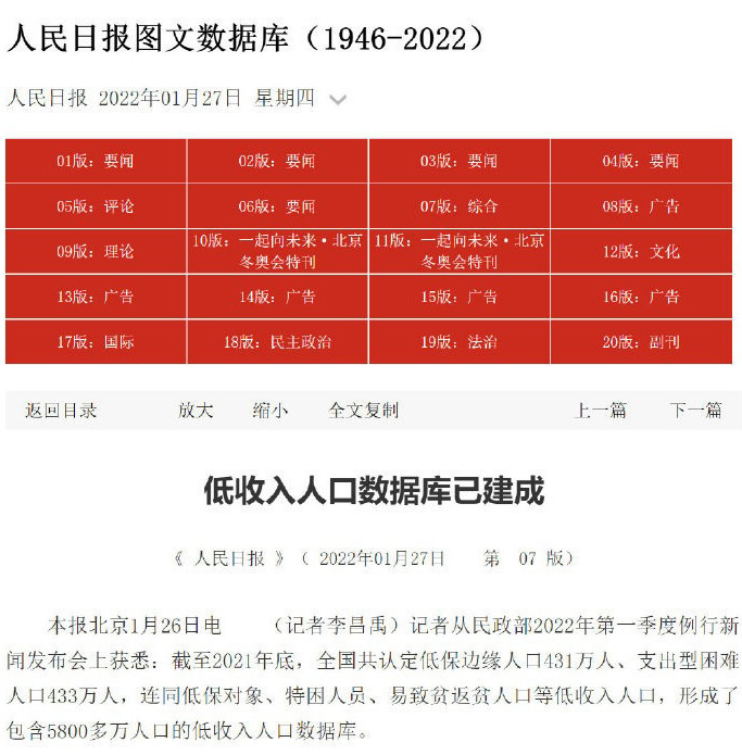 2022-01-27 22:34:57閱讀()人民日?qǐng)?bào)1月27日消息,據(jù)人民日?qǐng)?bào)報(bào)道,民政部2022年第一季度例行新聞發(fā)布會(huì)上透露,截至2021年底,全國(guó)共認(rèn)定低保邊緣人口431萬人、支出型困難人口433萬人,連同低保對(duì)象、特困人員、易致貧返貧人口等低收入人口,形成了包含5800多萬人口的低收入人口數(shù)據(jù)庫(kù)。