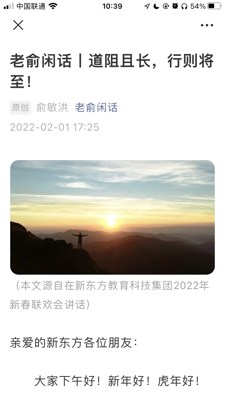 大家可能會覺得,2021 年發(fā)生的事情,對新東方的打擊和對俞敏洪的打擊到底有多大,坦率的說初期的郁悶是存在的,但是這種感覺過去后,其實(shí)給我?guī)淼?,也是給新東方帶來的,是未來無窮無盡的新發(fā)展契機(jī)。整體上我覺得新東方從 2022 年開始,是我們新東方在過去的 20 多年以后再次重新起步走向輝煌的一個新的階段。