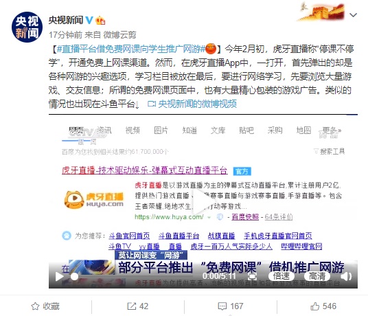 虎牙等直播平臺被央視點名:網(wǎng)課內(nèi)容到處充斥游戲廣告