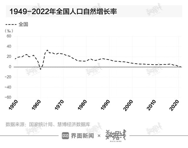 從整體趨勢而言,據(jù)國家統(tǒng)計局數(shù)據(jù),1963年至今,全國人口自然增長率由最高33.33‰降至0.34‰,累計下降32.99個千分點。