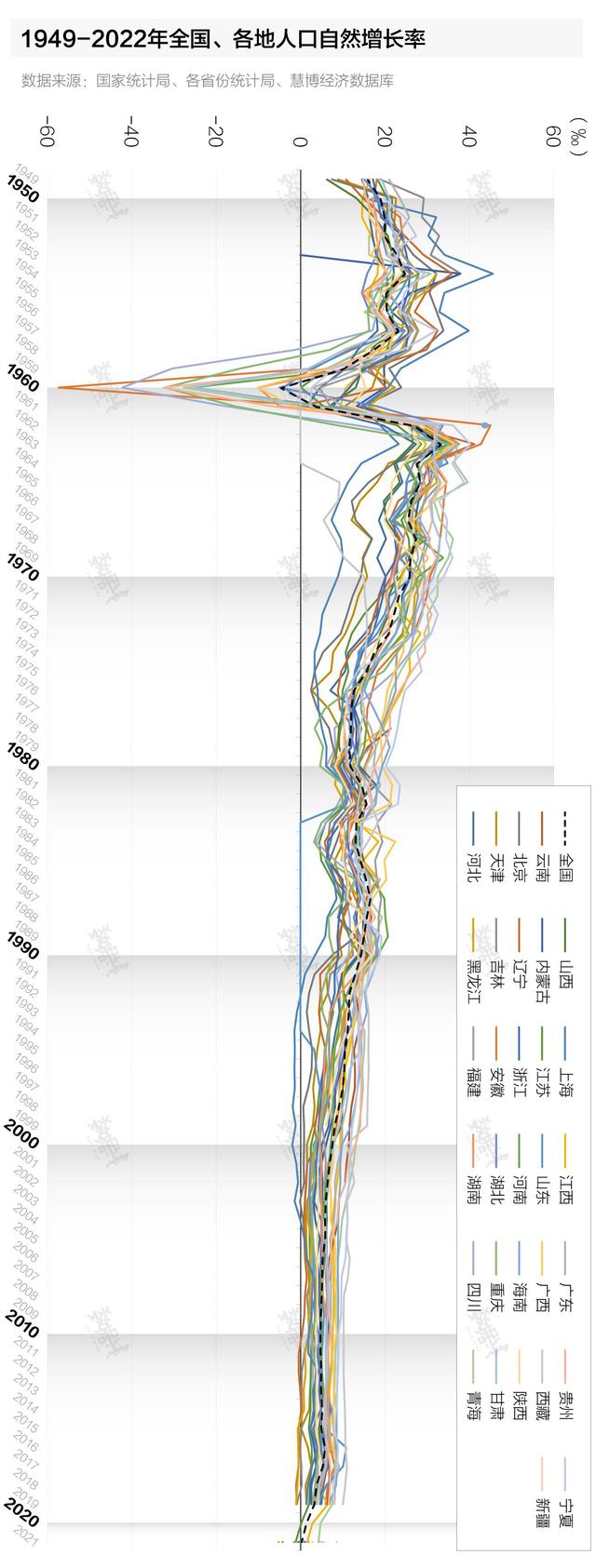 2022-05-21 10:13:58閱讀()國家統(tǒng)計局全國27省份“人口自然增長率”披露。據(jù)國家統(tǒng)計局數(shù)據(jù),1963年至今,我國人口自然增長率由最高33.33‰降至0.34‰。其中,新冠疫情持續(xù)的第二年,我國人口自然增長率創(chuàng)下自1964年以來最大同比降幅。那么,近年人口自然增長率的大幅下降,真的跟疫情有關(guān)嗎?各省份趨勢有什么特征?