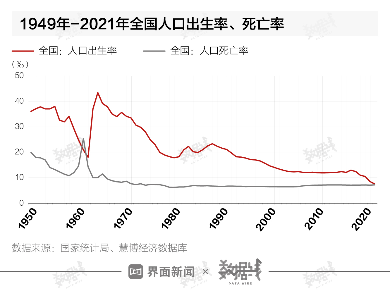 那么,到底問題出在哪?界面數(shù)據(jù)在統(tǒng)計了歷年人口出生率、死亡率數(shù)據(jù)后發(fā)現(xiàn),人口增長率大幅下跌,“主要問題”在出生人口上。
