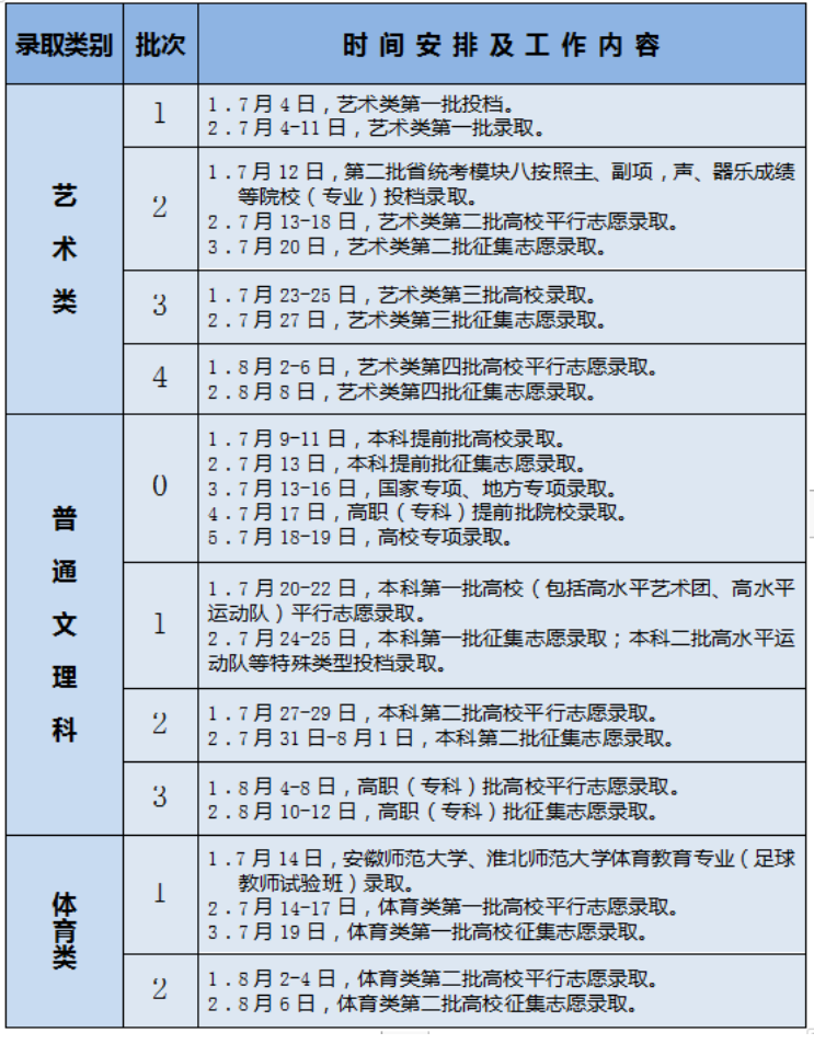 2022年安徽省普通高校招生錄取時間表公布
