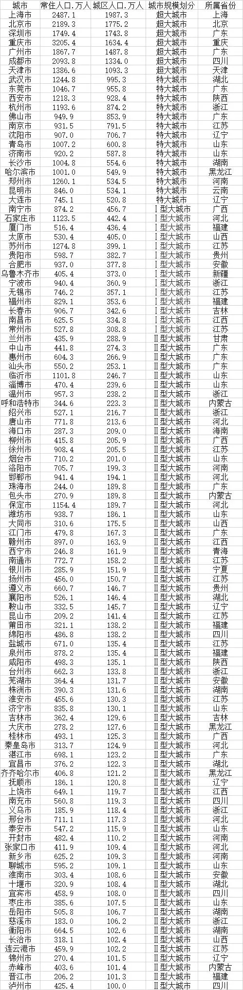 需要解釋的是,城區(qū)是指在市轄區(qū)和不設(shè)區(qū)的市,區(qū)、市政府駐地的實際建設(shè)連接到的居民委員會所轄區(qū)域和其他區(qū)域。也就是說,市轄區(qū)內(nèi)的農(nóng)村地帶,并不計入城區(qū)范疇。總體看來,城區(qū)人口規(guī)模要小于市域常住人口規(guī)模,也小于市轄區(qū)人口規(guī)模。