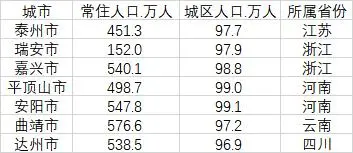 未來還有多個城市城區(qū)人口有望超過百萬大關(guān),進入到大城市行列。第一財經(jīng)記者梳理發(fā)現(xiàn),包括泰州、瑞安、嘉興、平頂山、安陽、曲靖的城區(qū)人口均超過了97萬,其中安陽市更是達(dá)到了99.1萬人,平頂山市也達(dá)到了99萬人,嘉興市達(dá)到了98.8萬人。