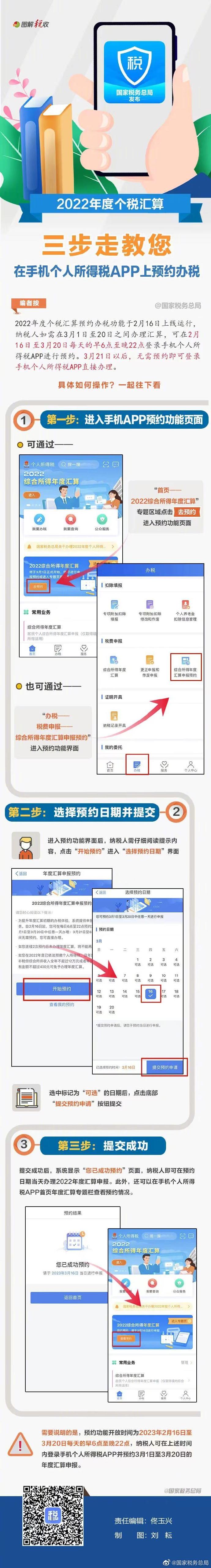 2023-02-21 09:24:34閱讀()國(guó)家稅務(wù)總局實(shí)用!3步學(xué)會(huì)手機(jī)預(yù)約2022個(gè)稅匯算