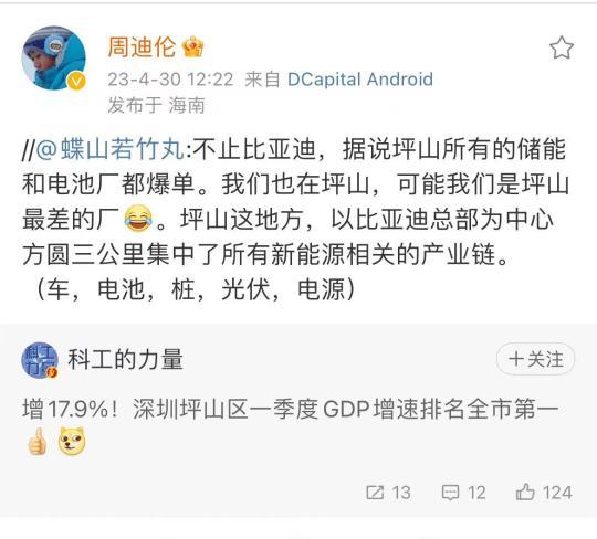 針對坪山區(qū)的一季度的經濟數據,有網友在社交媒體上稱,“不止比亞迪,據說坪山所有的儲能和電池廠都爆單。”“以比亞迪總部為中心方圓三公里集中所有新能源相關產業(yè)鏈。”