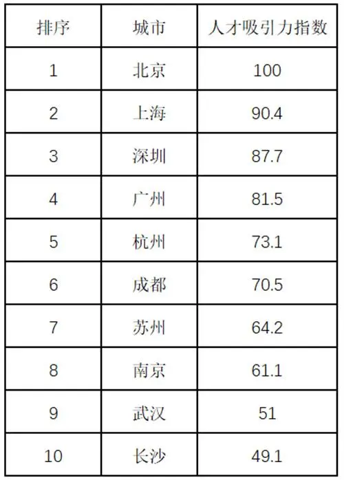 盤點(diǎn):中國人才吸引力10強(qiáng)城市
