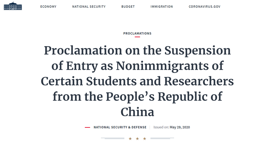 最后值得一提的是,在今年5月29日,美國總統(tǒng)特朗普曾簽發(fā)了一則封殺部分中國留學(xué)生和學(xué)者的總統(tǒng)令,禁止任何與在中國從事“軍民融合”項(xiàng)目的院校機(jī)構(gòu)有關(guān)聯(lián)的學(xué)生和學(xué)者,來美國進(jìn)行本科以上的學(xué)習(xí)和學(xué)術(shù)研究。