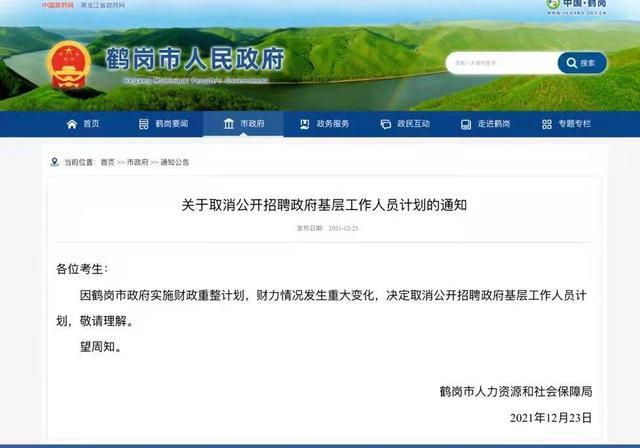 鶴崗取消招聘政府基層工作人員 背后原因是什么?