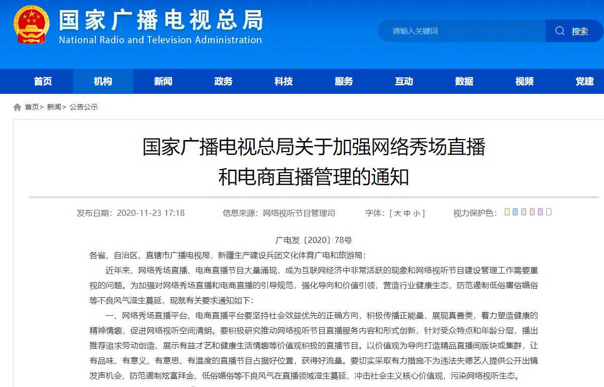 11月23日消息今天,廣電總局發(fā)布了關(guān)于加強(qiáng)網(wǎng)絡(luò)秀場直播和電商直播管理的通知,通知指出,網(wǎng)絡(luò)秀場直播平臺(tái)要對網(wǎng)絡(luò)主播和打賞用戶實(shí)行實(shí)名 ...