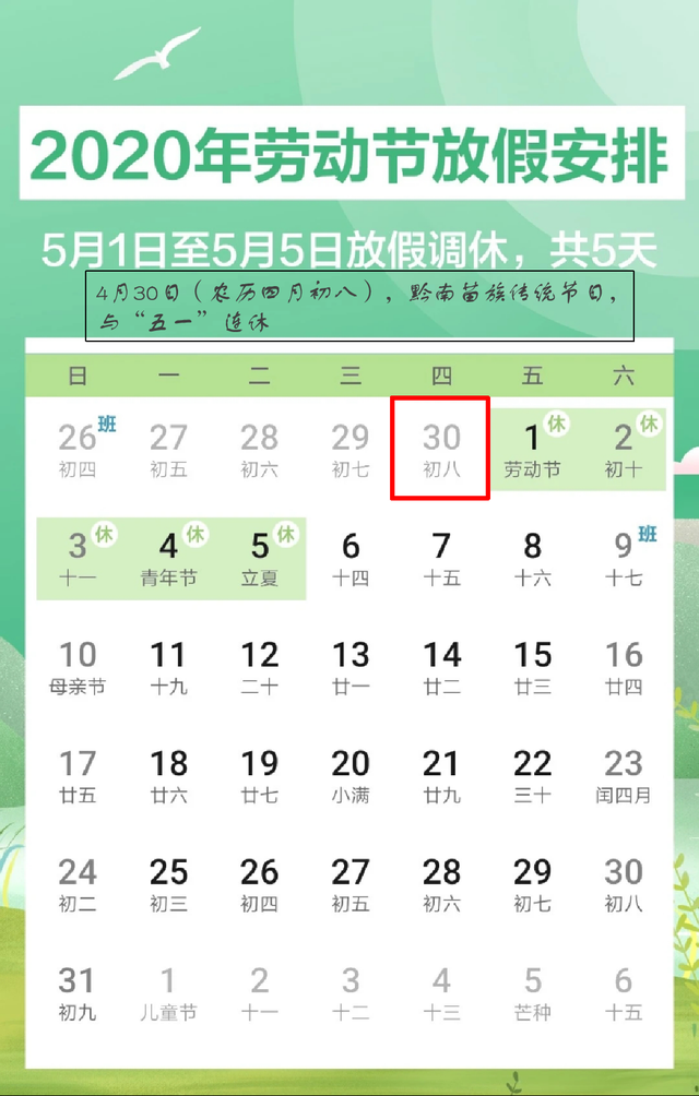 關于2020年勞動節(jié)放假安排的通知根據(jù)國務院辦公廳通知精神,現(xiàn)將2020年勞動節(jié)放假安排通知如下:5月1日(星期五)至5月5日(星期二)放假調休, ...