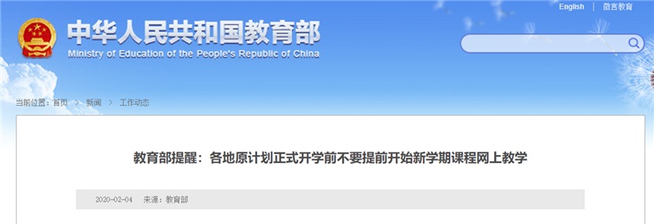 教育部:各地原計劃正式開學前不要提前網(wǎng)上教學
