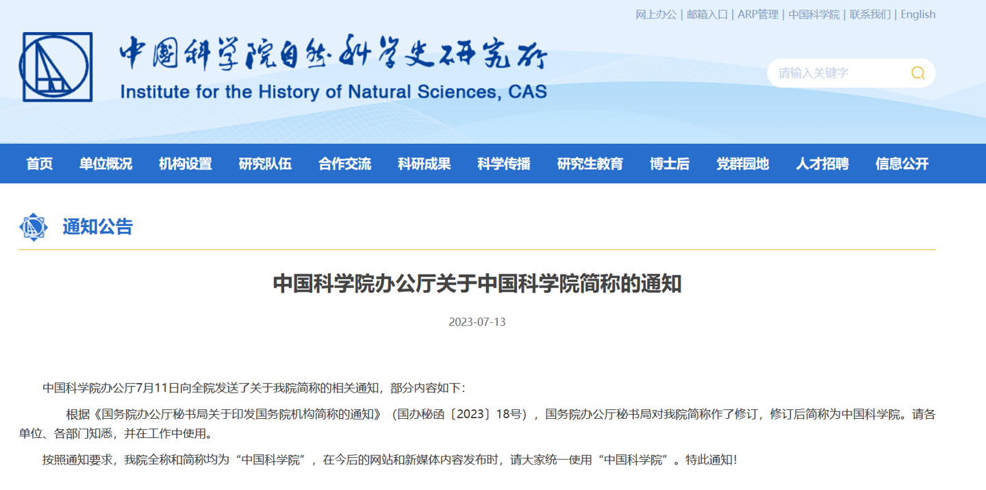 據(jù)中國科學院官方消息,中國科學院辦公廳7月11日向全院發(fā)送了關(guān)于中國科學院簡稱的相關(guān)通知,部分內(nèi)容如下:根據(jù)《國務院辦公廳秘書局關(guān)于 ...