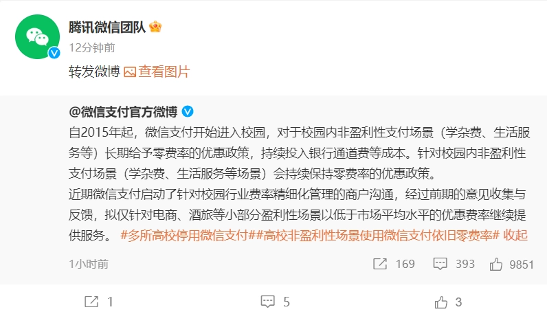 多家高校下月起停用微信支付,微信團隊致歉:將優(yōu)化與高校溝通流程