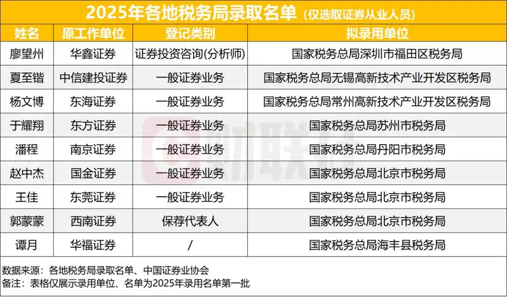 隨著各地公務(wù)員擬錄取名單陸續(xù)公布的,是證券從業(yè)人員考公上岸的消息頻頻刷屏。4月14日,各地稅務(wù)局公布了2025年度擬錄用公務(wù)員公示公告(第 ...