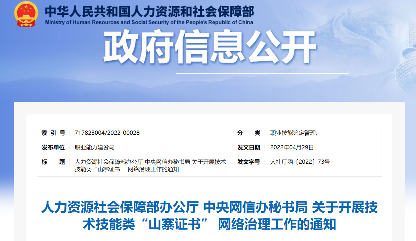 據(jù)工人日報報道,日前,兩家打著職業(yè)資格幌子發(fā)放山寨證書牟利的網站被查處關停。今年3月,人社部、中央網信辦印發(fā)了《關于開展技術技能類 ...