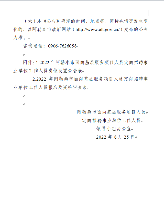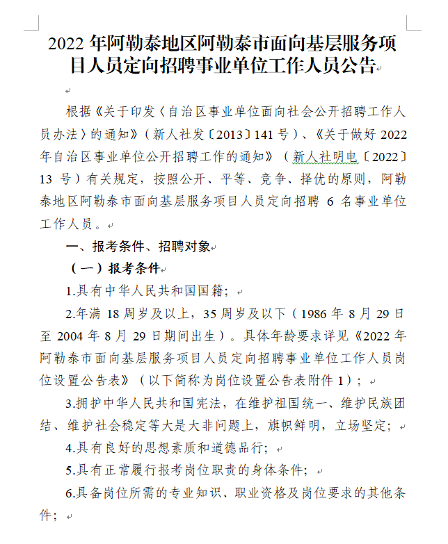 2022年阿勒泰地區(qū)阿勒泰市面向基層服務項目人員定向招聘事業(yè)單位工作人員公告