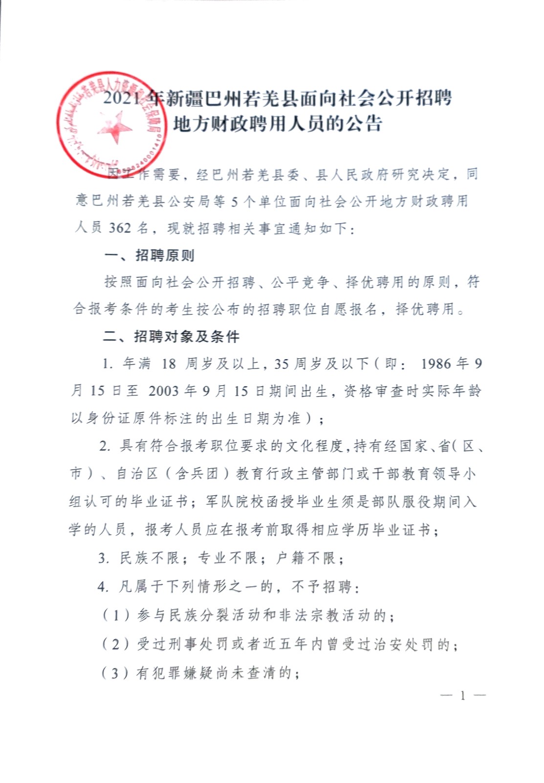 2021年巴州若羌縣面向社會(huì)公開(kāi)招聘地方財(cái)政聘用人員公告
