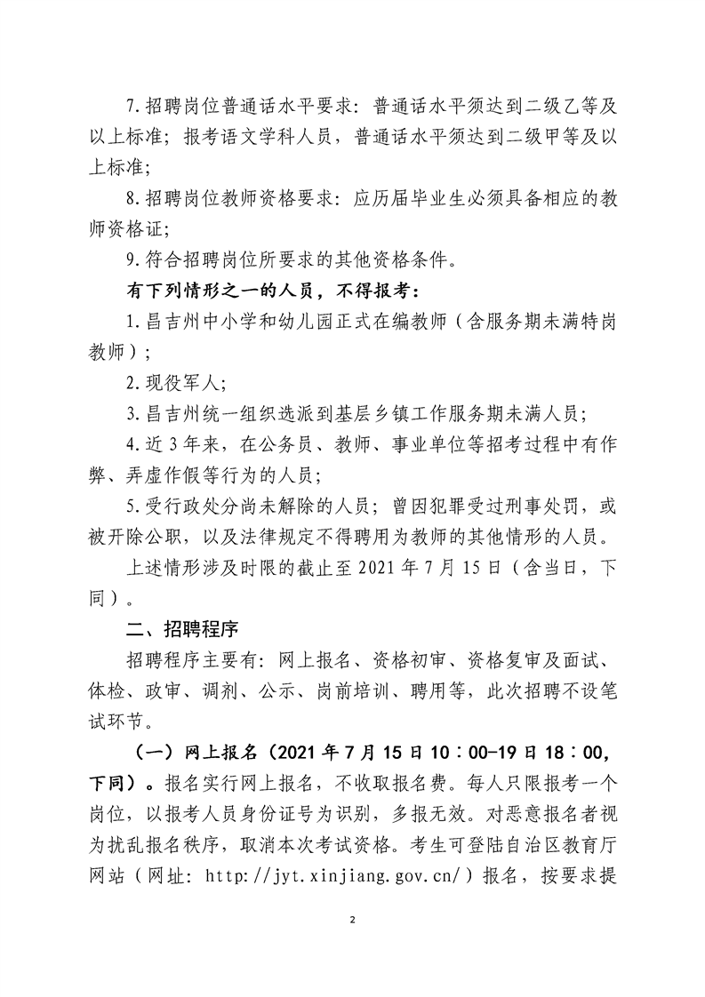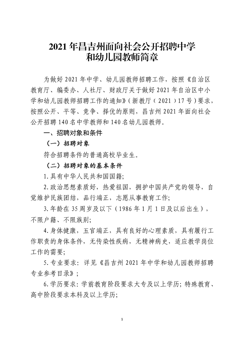 2021年昌吉州面向社會(huì)公開招聘中小學(xué)和幼兒園教師簡(jiǎn)章