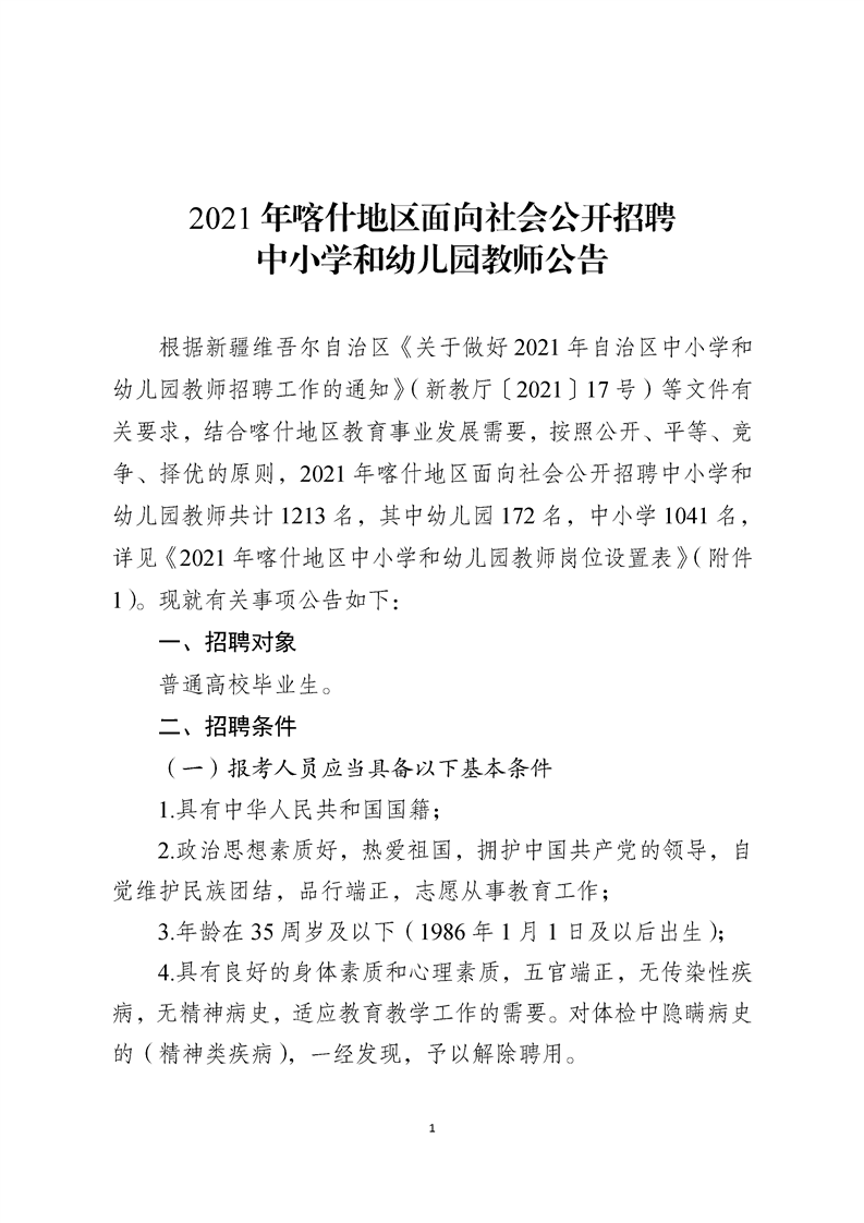 2021年喀什地區(qū)面向社會公開招聘中小學和幼兒園教師公告