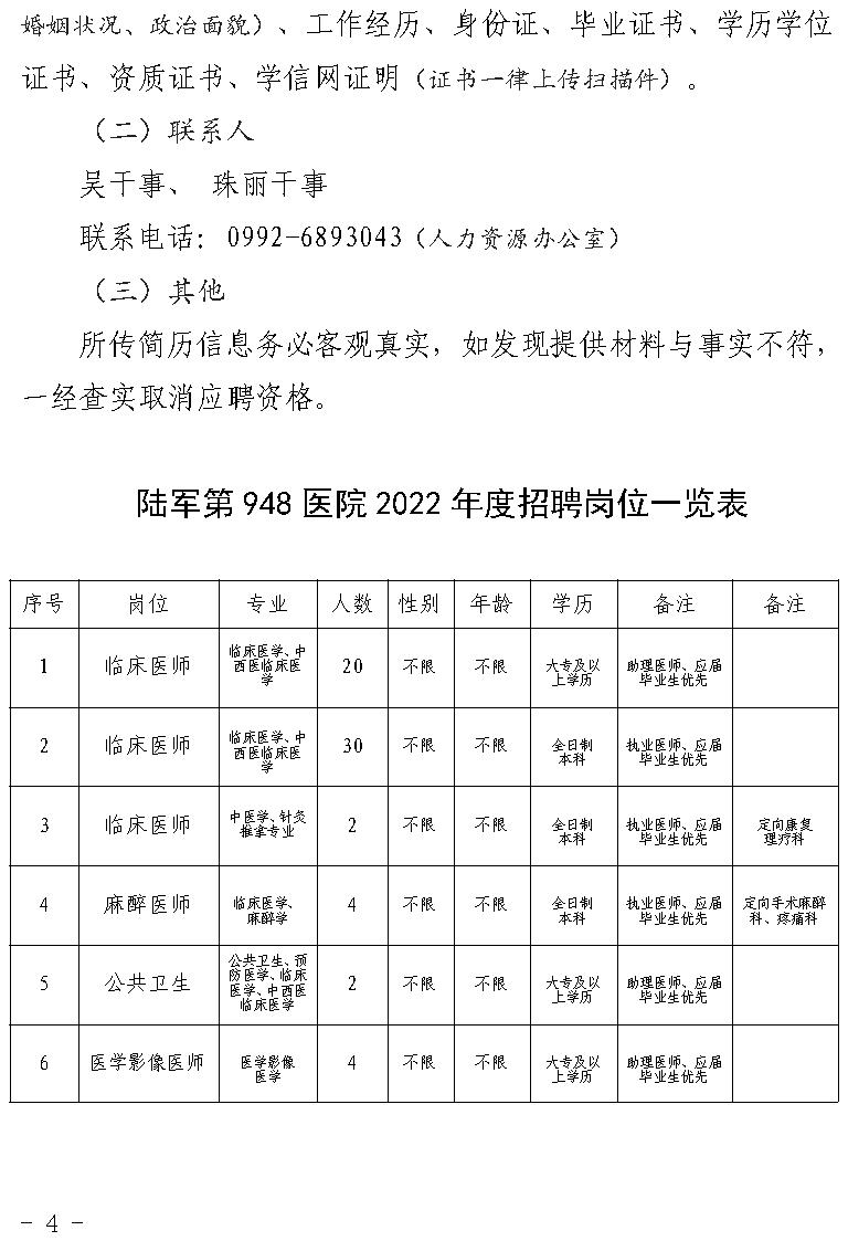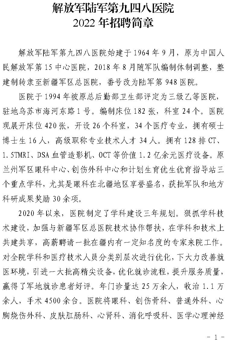 2022年塔城烏蘇市解放軍陸軍第九四八醫(yī)院招聘簡章