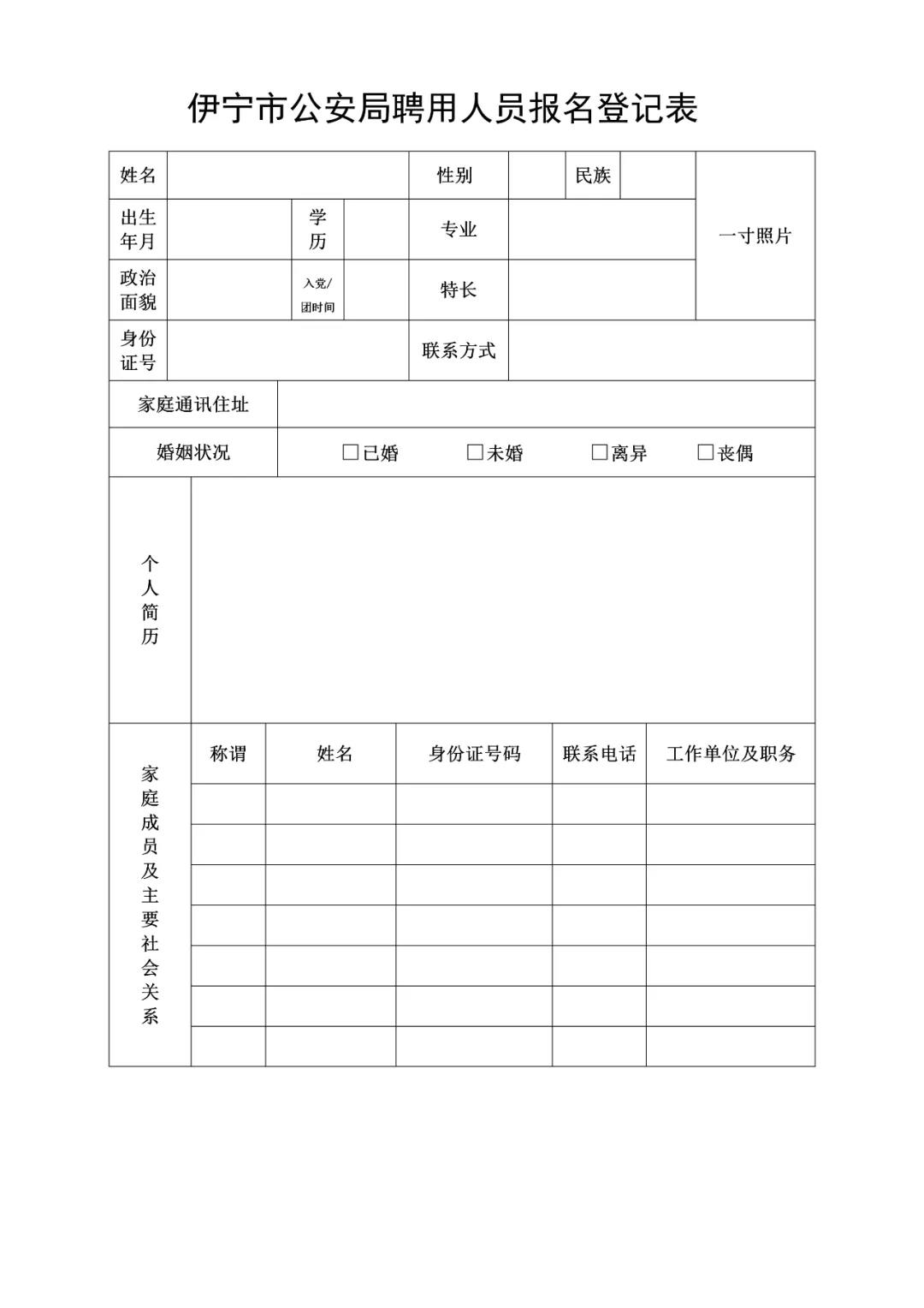 3、報名方式:關(guān)注“伊寧公安”微信公眾號,下載《伊寧市公安局聘用人員報名登記表》,政審合格后持本人身份證、畢業(yè)證、戶口本、退伍證復(fù)印件至伊寧市公安局現(xiàn)場報名。