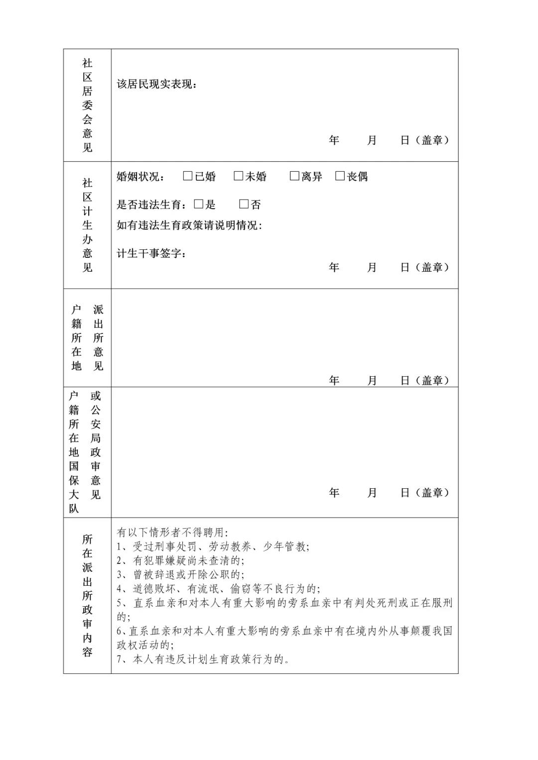 1、擁護(hù)中華人民共和國憲法,維護(hù)祖國統(tǒng)一,反對民族分裂和非法宗教活動;政治可靠,服從命令、聽從指揮,熱愛公安工作;