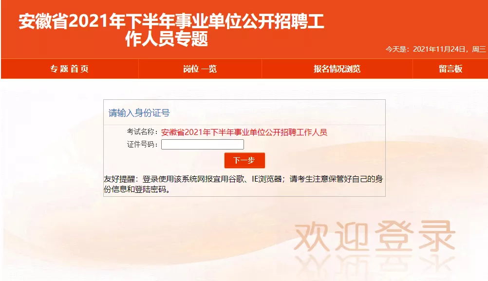 您的位置:首頁 / 招考資訊 / 成績 / 2021年下半年安徽省事業(yè)單位筆試成績查詢?nèi)肟?/div>