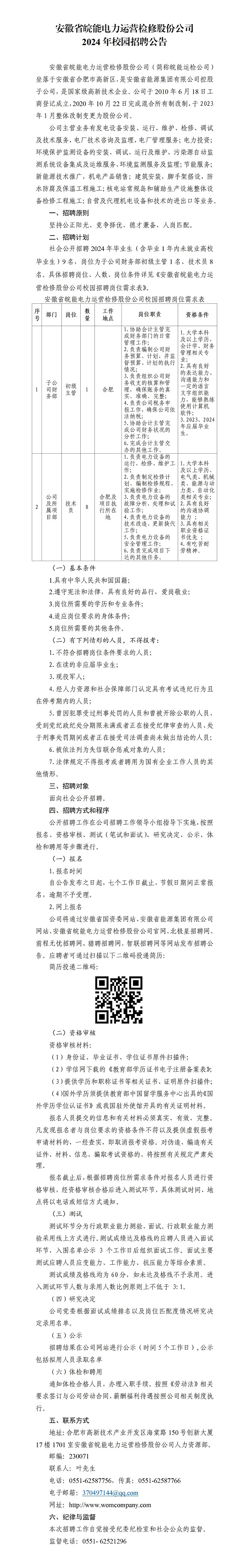 2024年安徽省皖能電力運(yùn)營檢修股份公司校園招聘公告