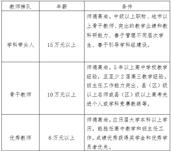 各科優(yōu)秀教師、年薪6萬-10萬元。