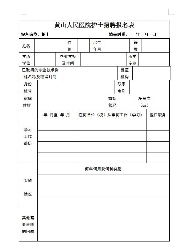 附件:黃山人民醫(yī)院護(hù)士招聘報(bào)名表