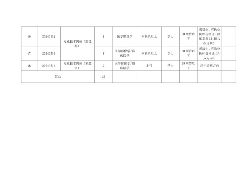 本次計(jì)劃公開招聘22名衛(wèi)生專業(yè)技術(shù)人員(詳見崗位表)。