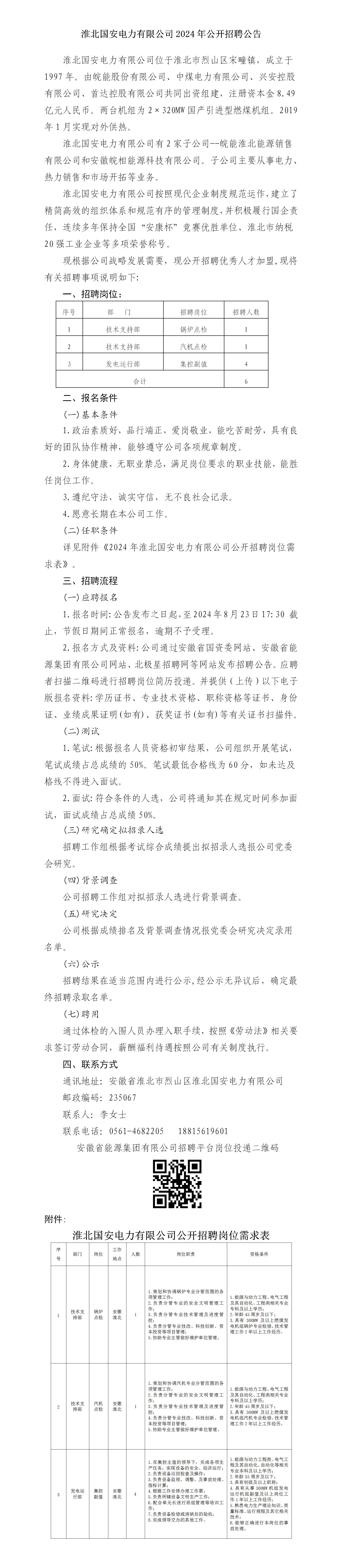 2024年淮北國(guó)安電力有限公司公開(kāi)招聘公告