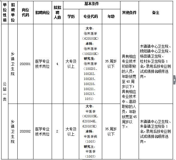 2020年青陽縣衛(wèi)生健康系統(tǒng)鄉(xiāng)鎮(zhèn)衛(wèi)生院公開招聘工作人員6名,全部納入事業(yè)編制管理,具體崗位及條件如下: