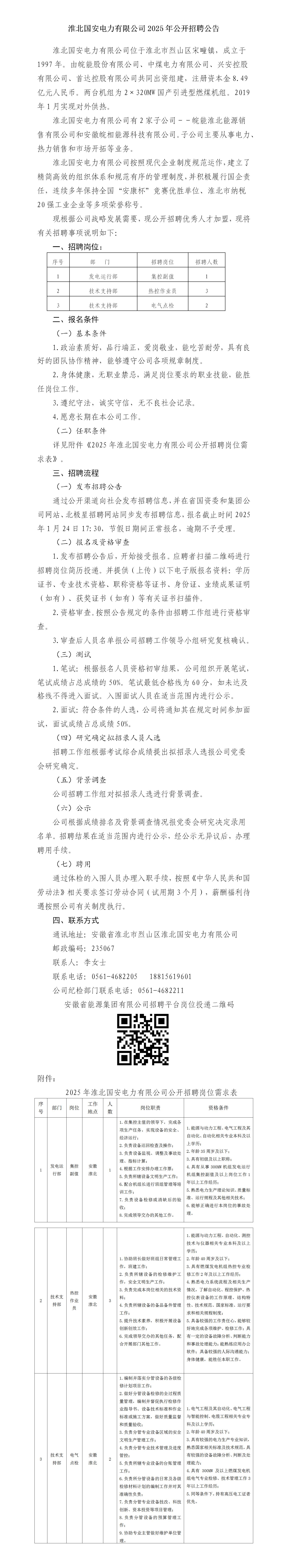 2025年淮北國(guó)安電力有限公司公開招聘公告