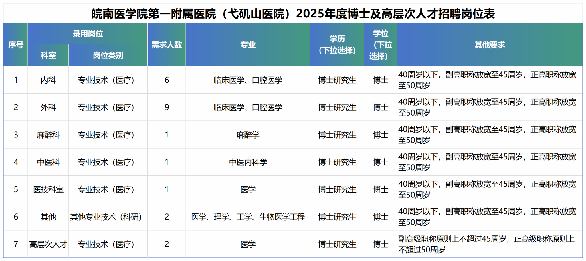 2025年蕪湖皖南醫(yī)學院第一附屬醫(yī)院(弋磯山醫(yī)院)公開招聘博士及高層次人才預公告
