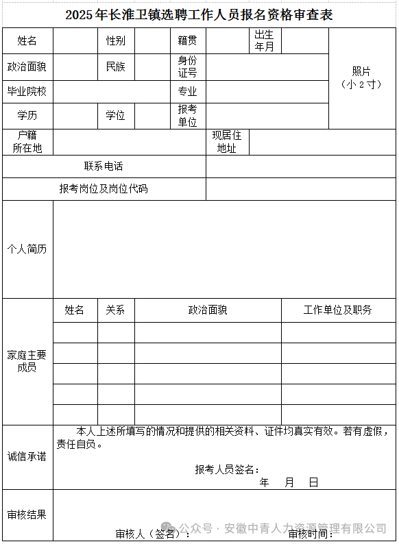 附件1:2025年長(zhǎng)淮衛(wèi)鎮(zhèn)選聘工作人員報(bào)名資格審查表