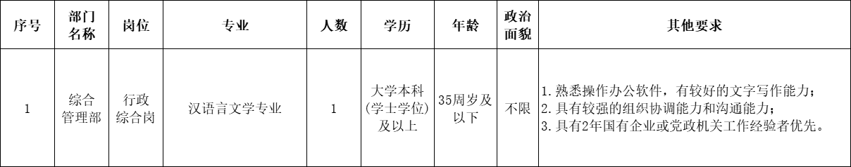 通過第三方勞務派遣方式招聘工作人員1名。