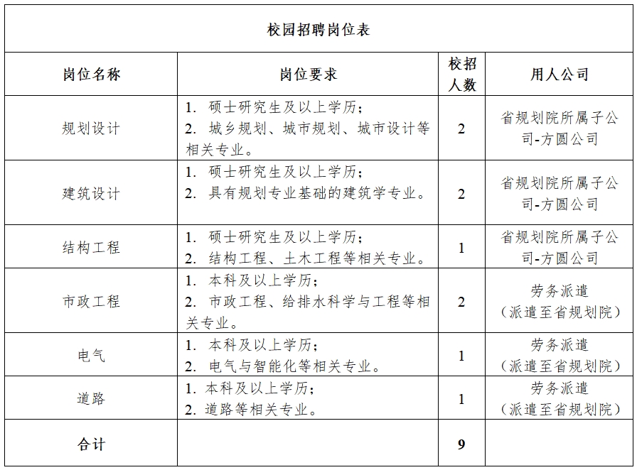 2.應(yīng)聘條件:詳見(jiàn)附件《安徽省城鄉(xiāng)規(guī)劃設(shè)計(jì)研究院有限公司及所屬方圓公司2025年度第一次社會(huì)、校園公開(kāi)招聘崗位表》。
