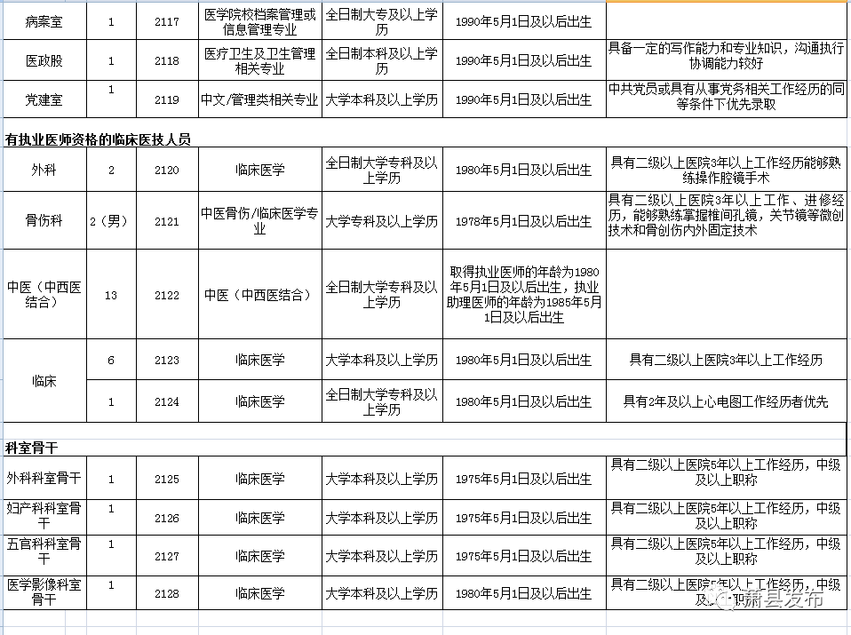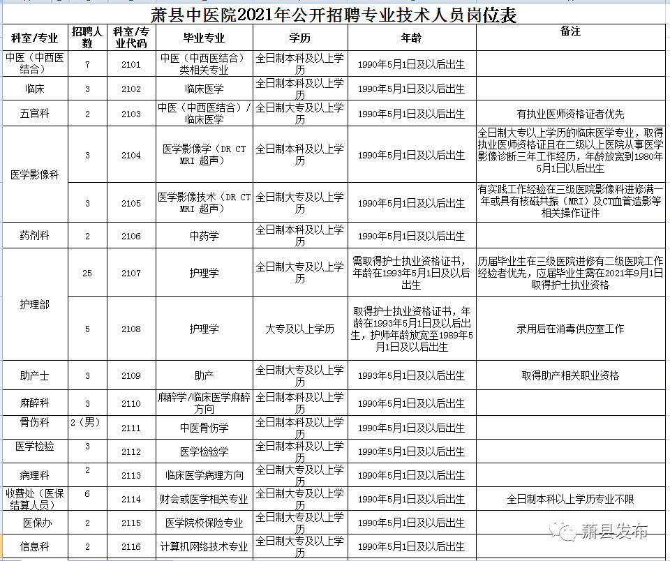 蕭縣中醫(yī)院,二級甲等中醫(yī)院,醫(yī)院設(shè)有內(nèi)科、外科、針推科、骨傷科、口腔科、婦科、肛腸科、檢驗科、影像科等臨床醫(yī)技科室,2021年新院投入使用,增設(shè)急診科、兒科、婦產(chǎn)科、五官科、腦病科、老年病、治未病等專業(yè)科室,努力打造糖尿病治療中心、康復治療中心、腫瘤治療中心、血透中心、中醫(yī)傳統(tǒng)療法中心等特色優(yōu)勢臨床基地,增加核磁共振、DSA等各種大型高端醫(yī)療設(shè)備。為滿足全縣人民的就醫(yī)需求和醫(yī)院發(fā)展需要,經(jīng)研究決定面向社會公開招聘合同制專業(yè)技術(shù)人員104名。
