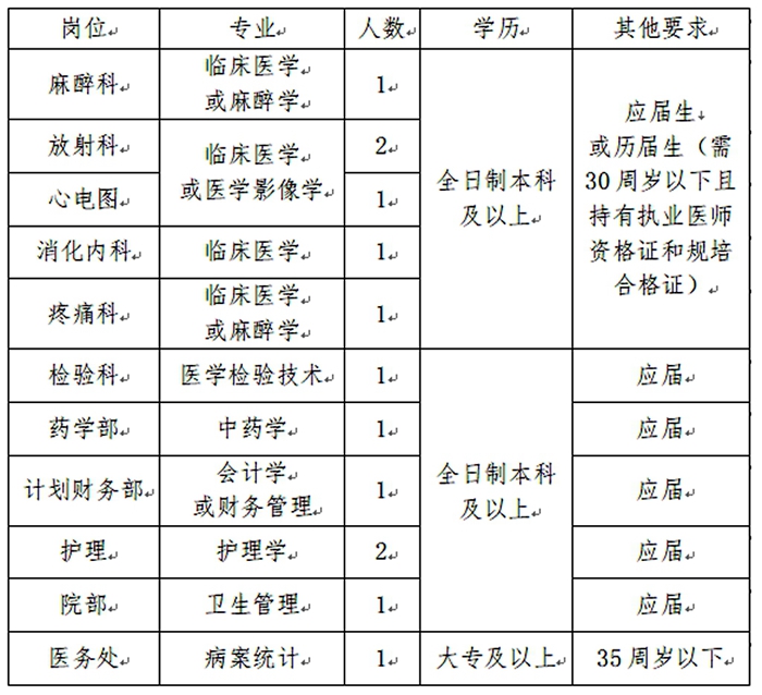 根據(jù)醫(yī)院業(yè)務(wù)發(fā)展的需要,現(xiàn)面向社會(huì)公開(kāi)招聘13人,具體公告如下: