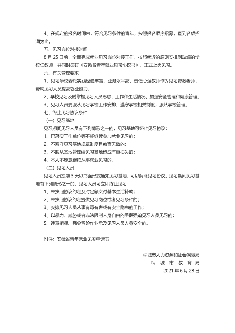 2021年安慶桐城市教育局青年就業(yè)見(jiàn)習(xí)基地招募見(jiàn)習(xí)青年公告