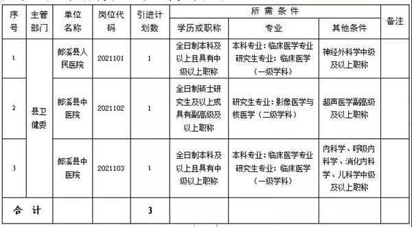 全縣縣級公立醫(yī)院共計(jì)劃引進(jìn)高層次、急需緊缺醫(yī)療技術(shù)人才3名,具體崗位、專業(yè)等要求如下: